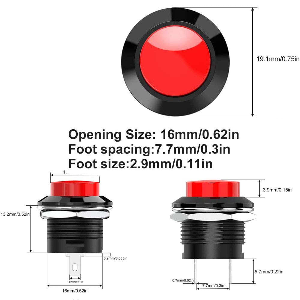 AC 250V 3A / AC125V 6A; Diámetro de montagem: 16 mm / 0,63 ", tamanho total: 24,4 x 20 mm / 0,96" x 0,79 "(L * D),