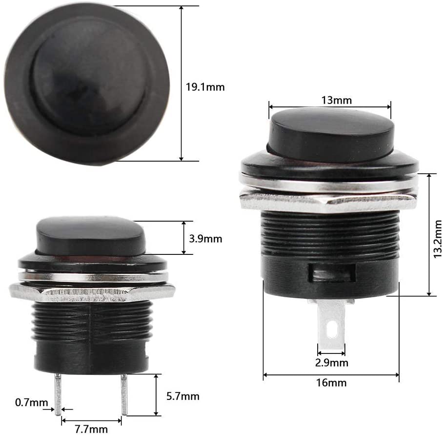 AC 250V 3A / AC125V 6A; Diámetro  de montagem: 16 mm / 0,63 ", tamanho total: 24,4 x 20 mm / 0,96" x 0,79 "(L * D),
