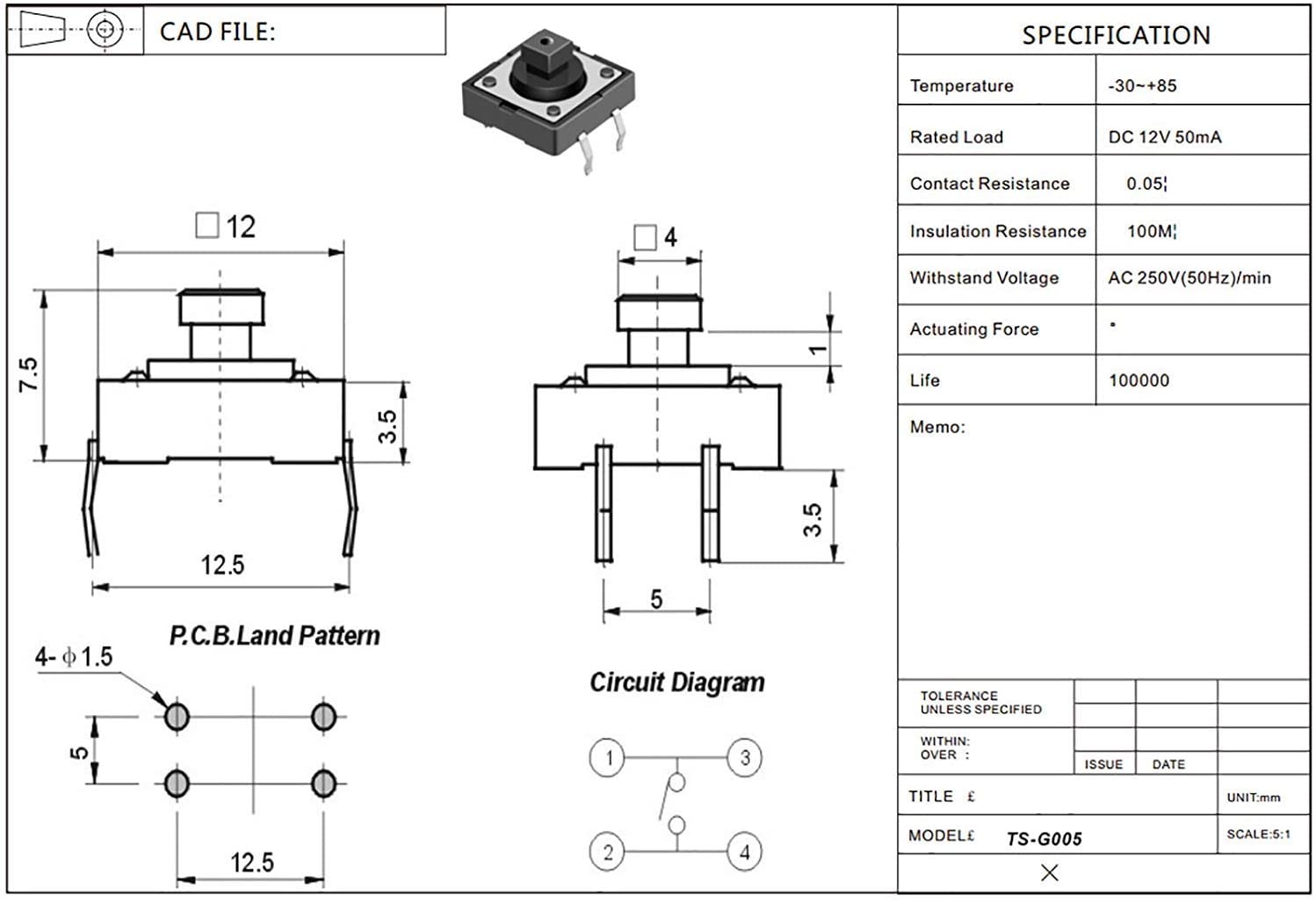 12 x 12 x 7,3 mm / 0,47 x 0,47 x 0,29"