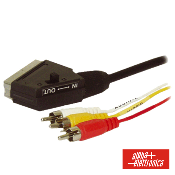 Cabo Scart Macho / 3Rca 1Vídeo-2Audio Comutador 1,5M