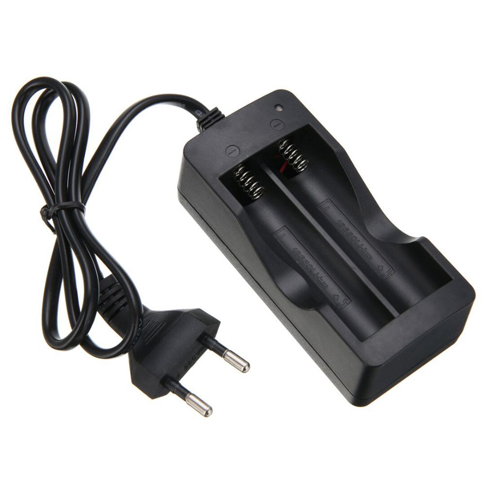 Carregador de baterias 18650 - Adequado p/ baterias 18650 (apenas 2) - Tensão funcionamento: 4,2V / 1000mAh - Estrutura em Plástico Preta - Comprimento do cabo: 47cm - Alimentação: 100-240V