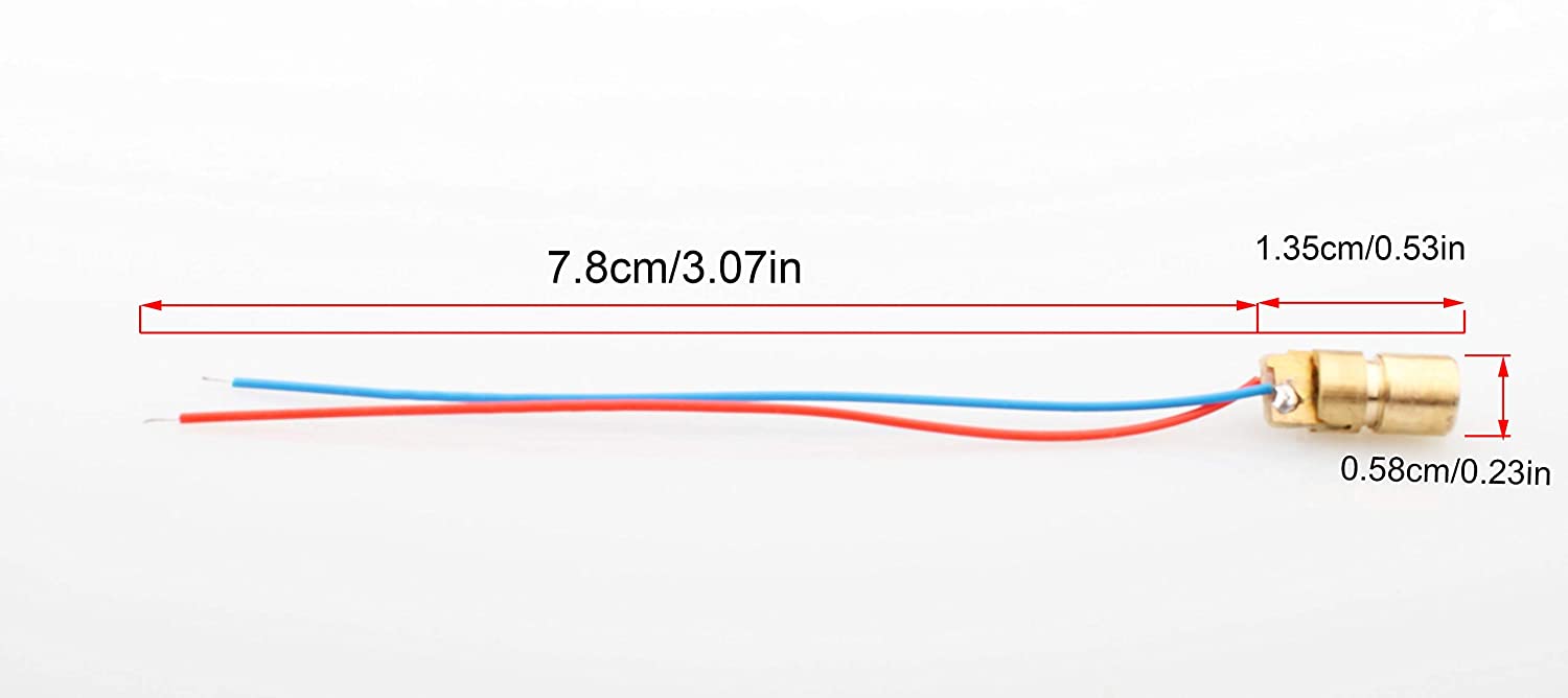 Diodo láser de 5 V: Material: Plástico de cobre; Diámetro exterior: 6 mm; Longitude de onda: 650 nm; Voltagem de funcionamento: 5 v; Corrente de funcionamento: deve ser inferior a 20 mA,