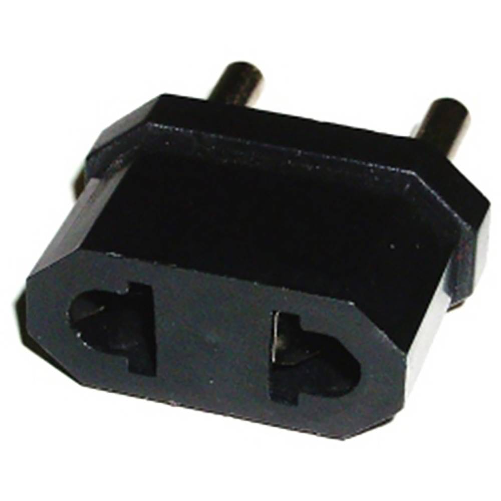 Especificações Adaptador de tomada de pino plana para peg rodada, Útil para conexão com plug-americana no primeiro round tipo ou tomadas Schuko, desde que a tensão elétrica e suporte freqüência da rede elétrica local, Ideal para adaptar os periféricos que vêm com fontes de alimentação universal (110-240V, 50/60Hz),