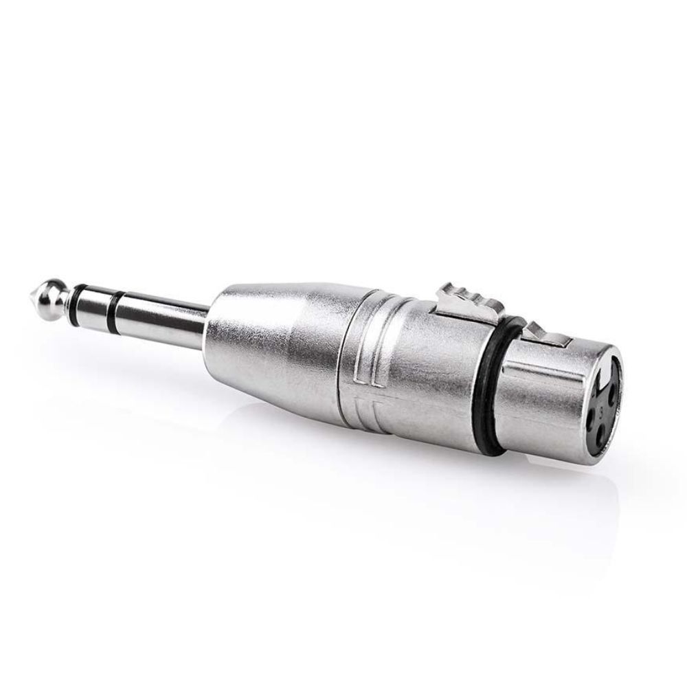 - Ficha adaptadora XLR 3P / Jack Stereo - XLR 3P Fêmea / Jack 6,35mm Macho Stereo - Corpo metálico Niquelado - Contactos em Bronze Niquelado - Terminal XLR c/ Bloqueio - Peso: 0,40 kg - Dimensões: 215x145x30mm mm