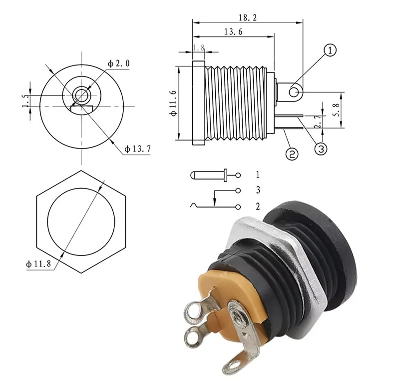 Ficha Alimentação DC fêmea 5,5x2,1mm para painel