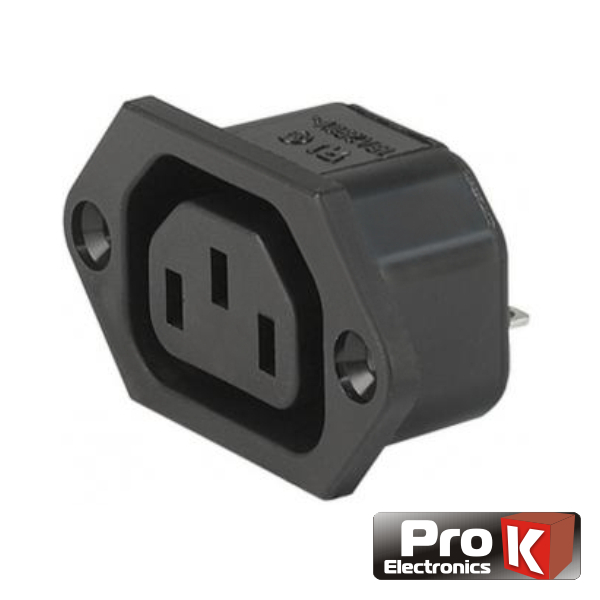 - Ficha de alimentação IEC C13 Fêmea - Ficha de painel c/ conector Faston 4,8mm - Estrutura em termoplástico Preto - Reforçada c/ fibra de vidro - Contactos em liga de cobre - Terminais de parafuso