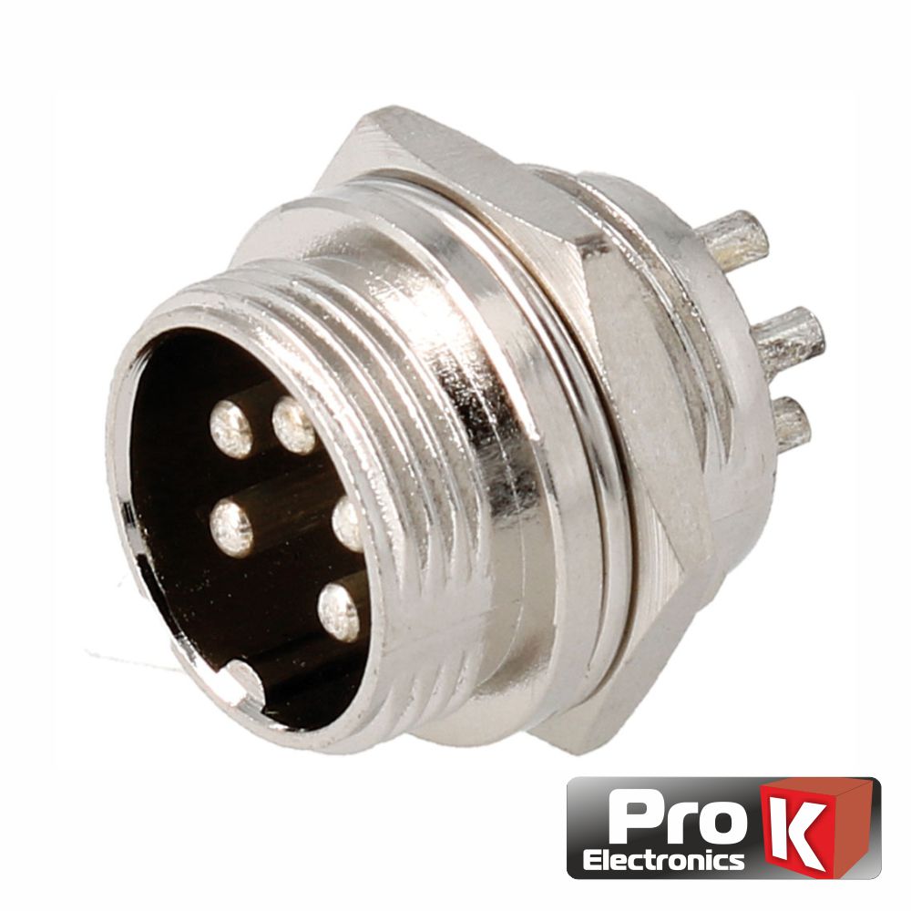 - Ficha de Microfone de Painel - Tipo: Macho 5 Pinos - Estrutura Niquelada - Isolamento em resina Fenólica - Terminais de soldar
