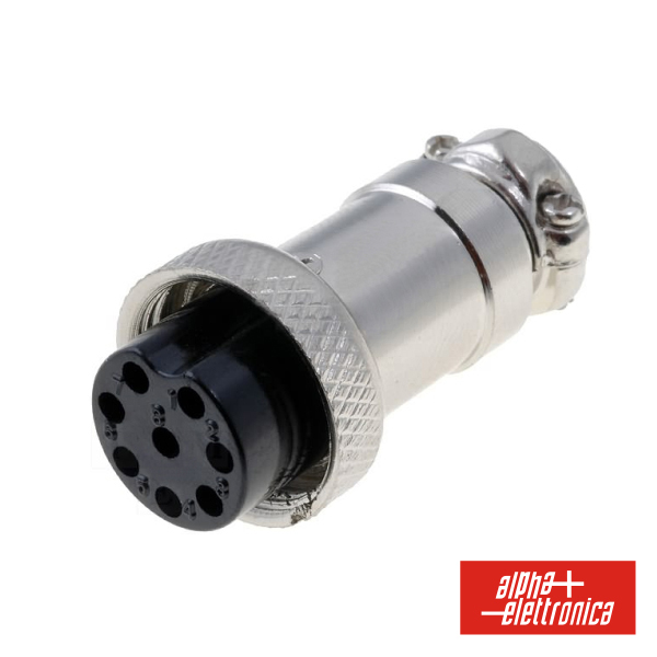 - Ficha de Microfone Fêmea 8P - Estrutura Niquelada - Isolamento em resina Fenólica - Terminais de soldar - Adequado p/ cabo: Ø5-7mm - Fixação por Serra-Cabos