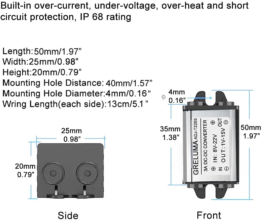 Fonte de alimentação impermeável 8 V-22 V 12 V para 1 V-15 V 6 V 9 V ajustável 3A