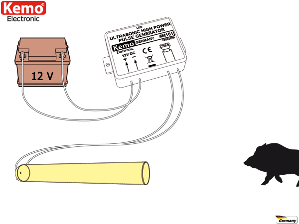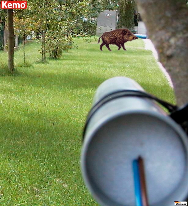Para afastar animais selvagens, como martens, javalis, veados etc. de jardins, terras agrícolas etc.