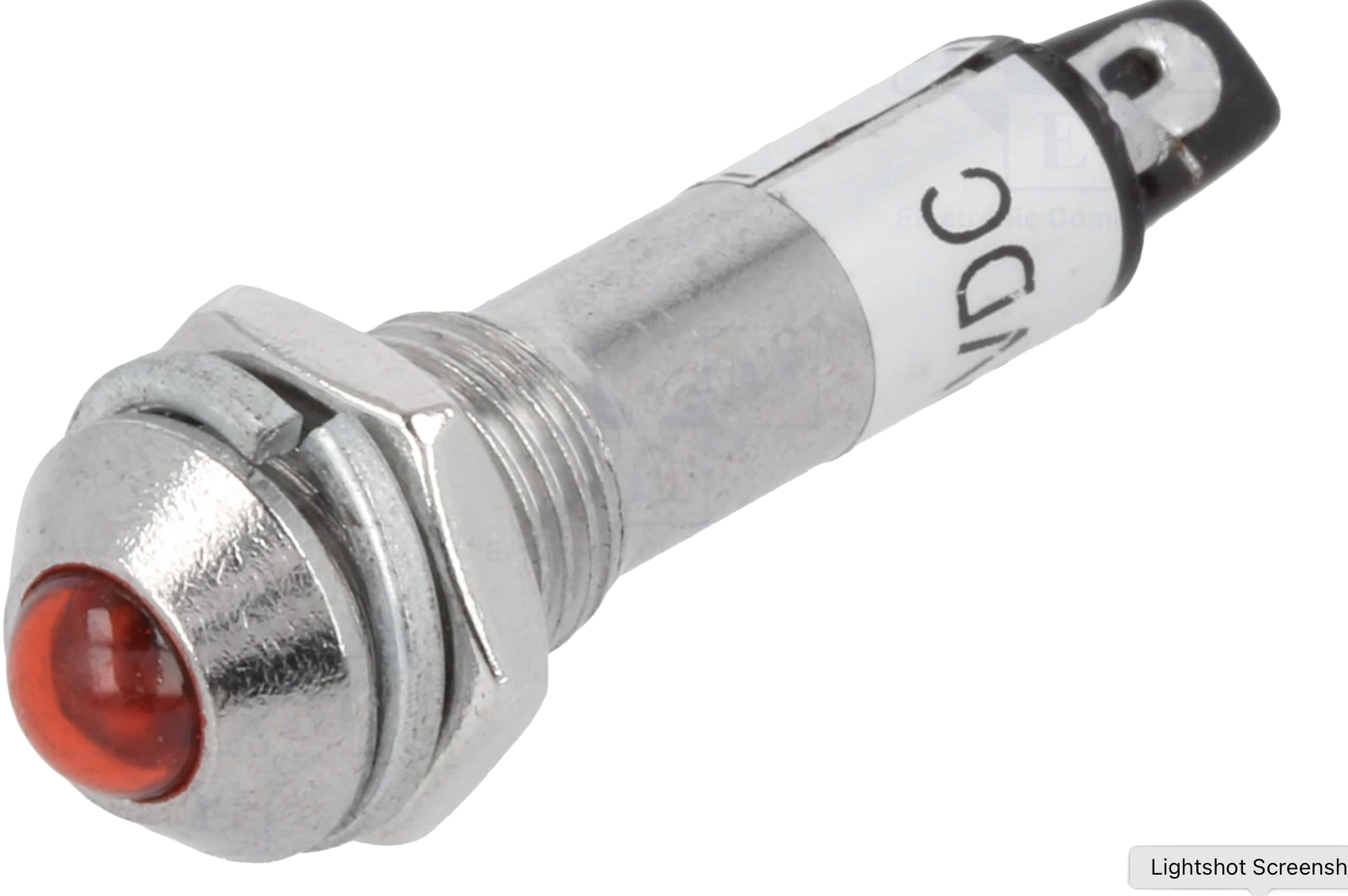 Indicador led vermelho 24VDC Ø8,2mm IP40 metal