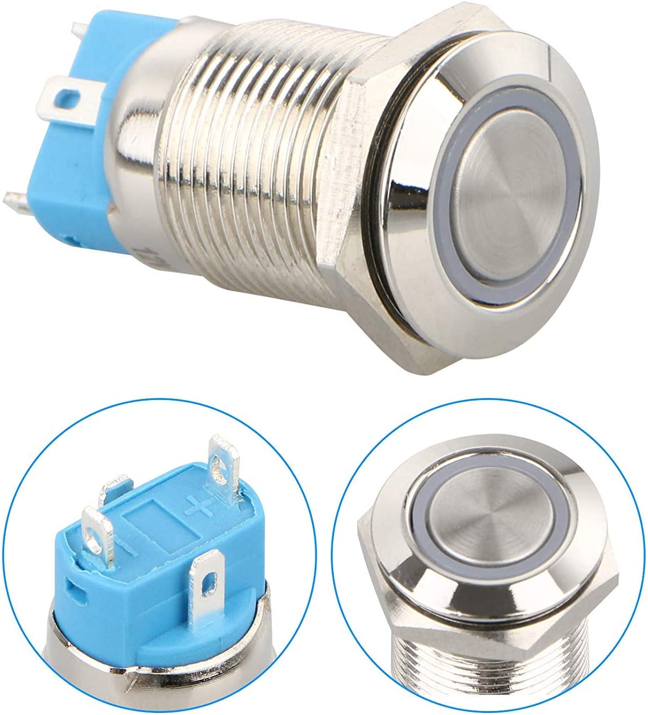 Interruptor de botão metálico, DC 12 V / 24 V luz led azul