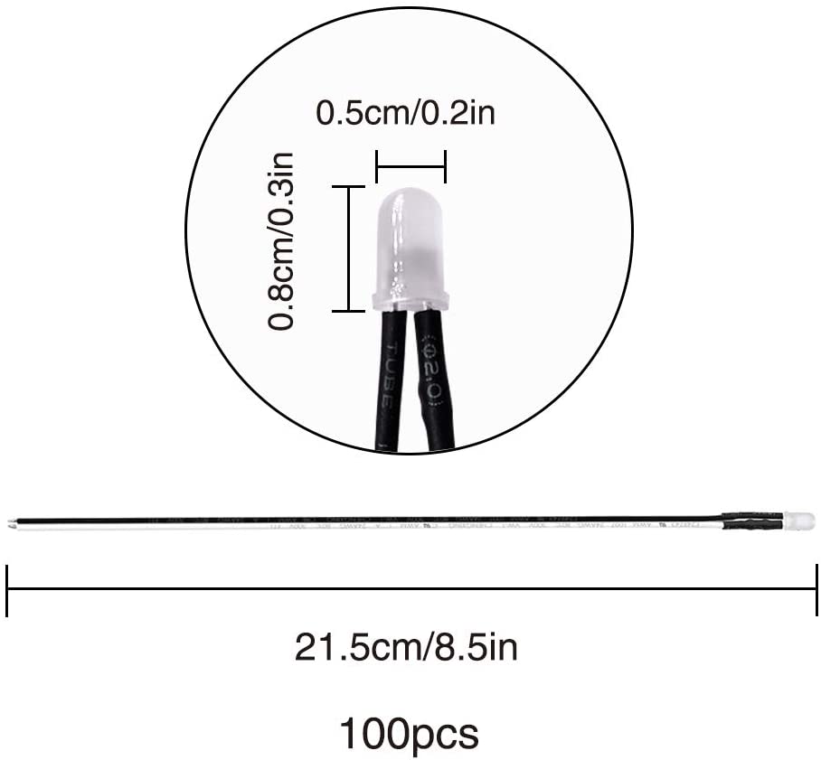 Led 5mm 12V Branco cabo de 20cm branco frio 6000K