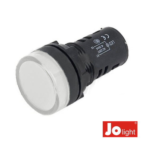 - Indicador redondo de painel a LED - Tensão de funcionamento: 230Vac - Estrutura em plástico Preta, 46mm - Diâmetro: Ø19,5mm, furação: Ø16mm - Conexão por Terminais de parafuso - Cor do LED: Branco