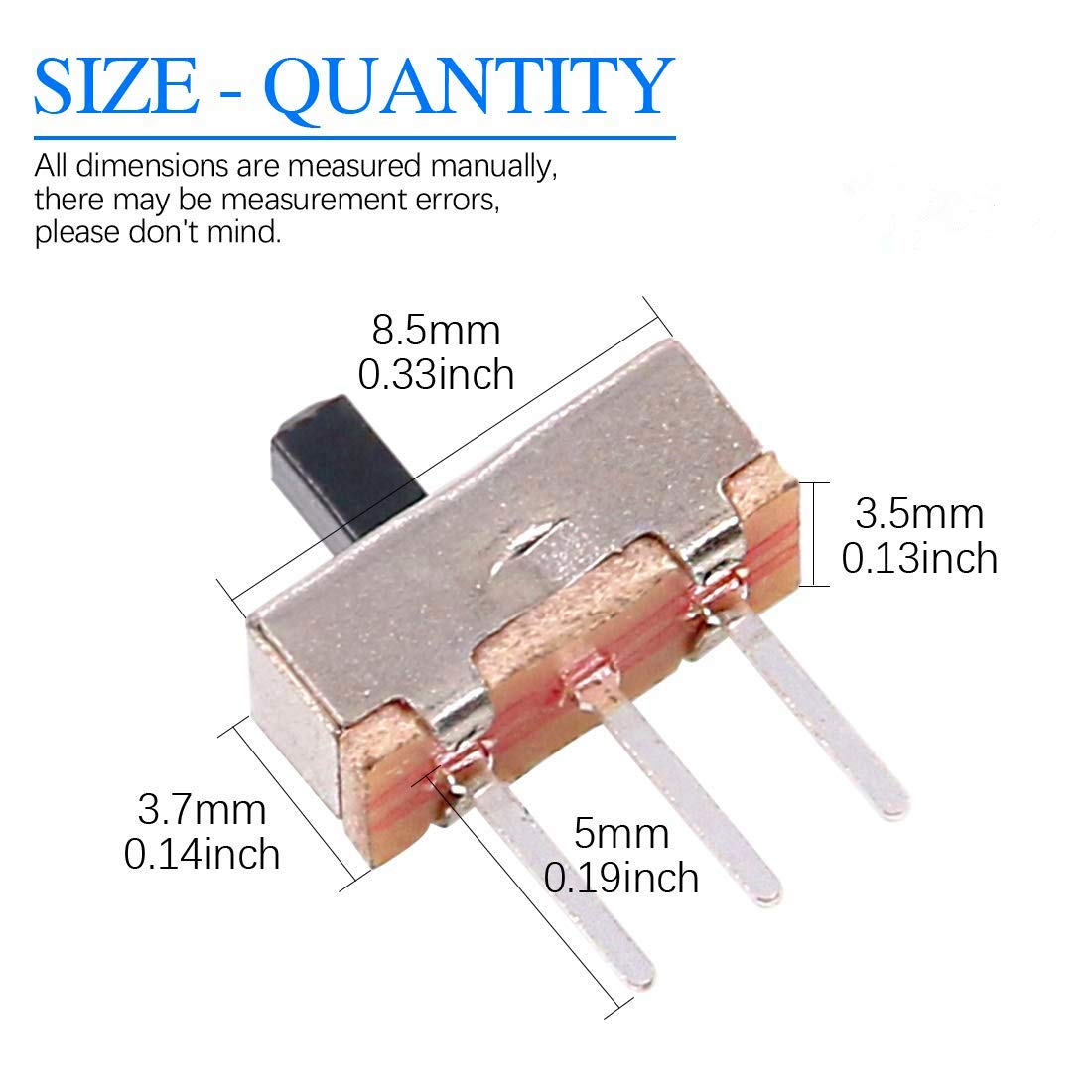 Comprimento da haste: 3 mm / 0,12" "; Dimensão: Tamanho: 8,8 x 4,2 x 3, 8 mm / 0, 35 x 0, 17 x 0, 38 cm (C * L * A) (Os pinos e o botão não estão incluídos)