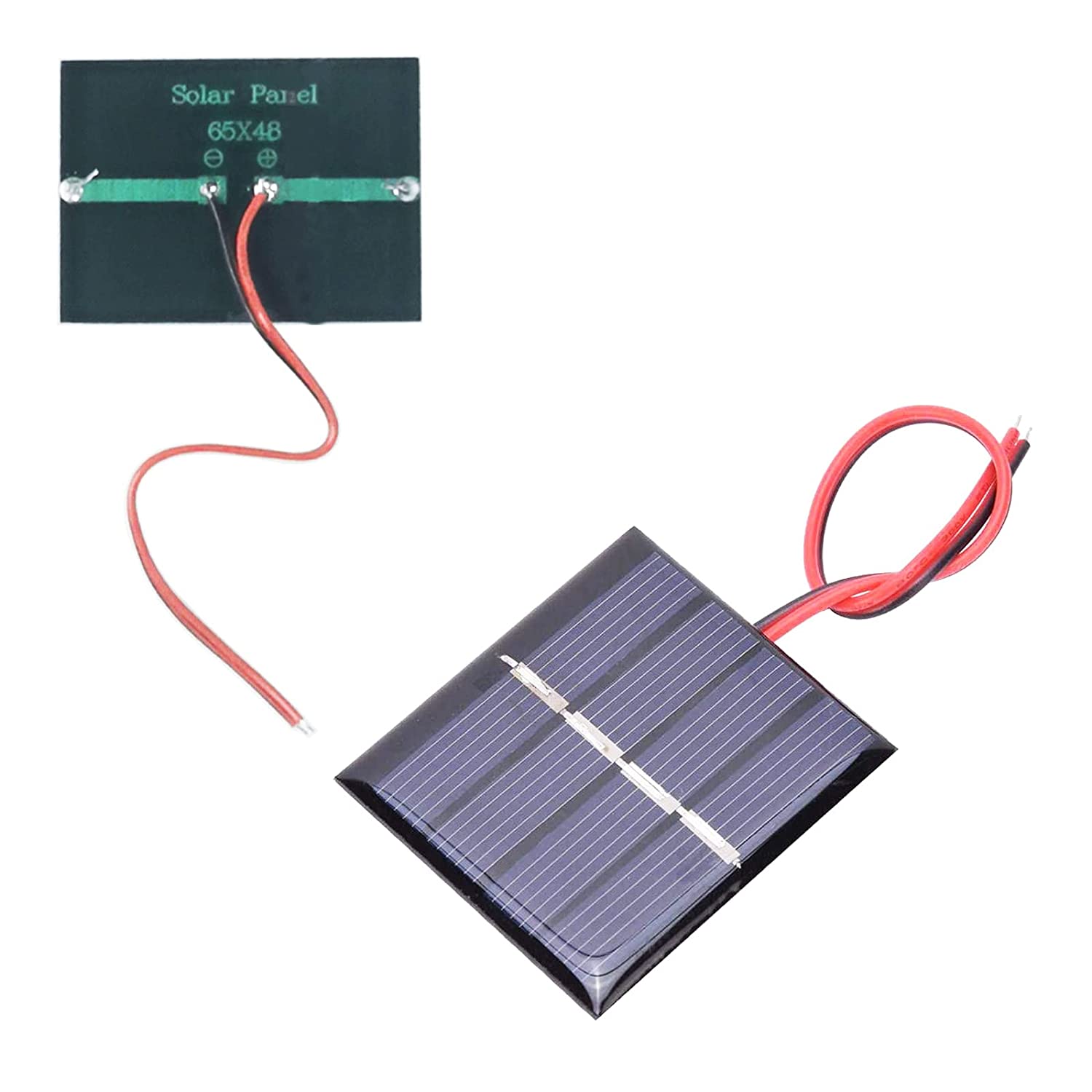 Material: silício policristalino cor: preto e azul Potência máxima: 0,3 W, Tensão operacional: 3 V Tensão de circuito aberto: 3 V Corrente: 0-100 mA, Corrente de trabalho: 0-0,1 A Tamanho: 65 * 48 * 3 mm Comprimento do cabo: 14,5 cm