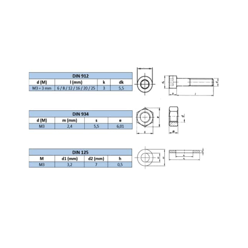 Parafuso M3 25 mm preço por unidade - inclui porca e anilha