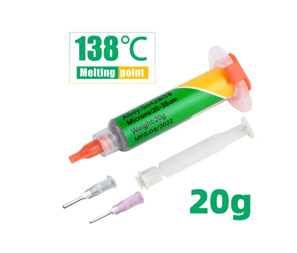 Pasta soldar Sn42Bi58 SMD 138ºC baixa temperatura sem chumbo, ideal para soldar SMD 20gr