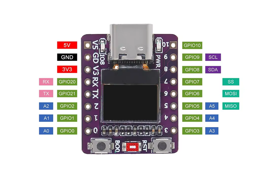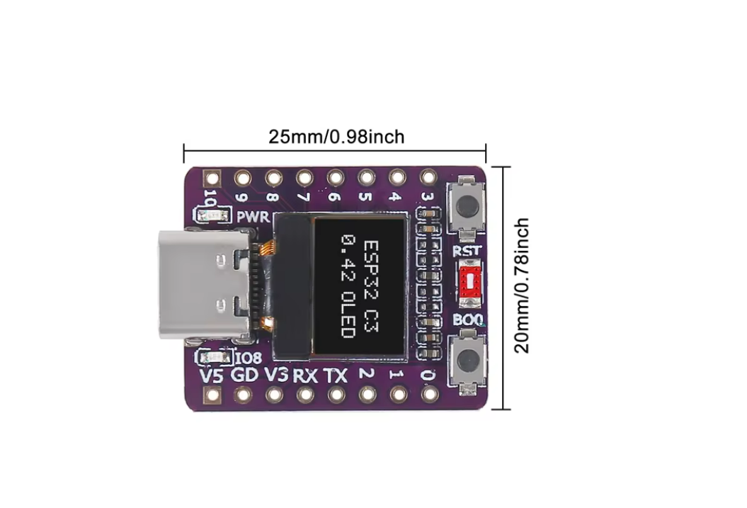 Placa ESP32-C3 USB-C com ecrâ oled 0,42 polegadas