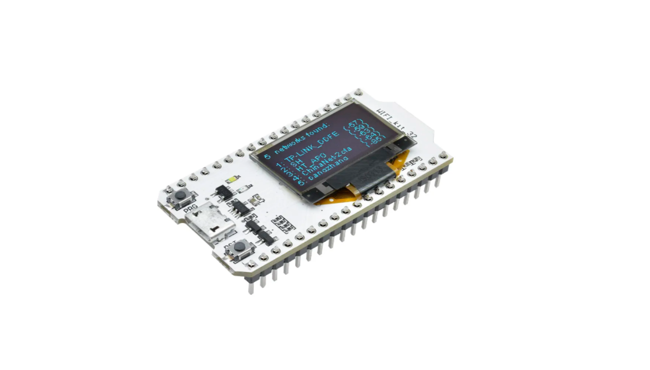 O principal chip usa o processador Lexin Esp32, Tensilica LX6, com 240mHz, com potência de computação até 600dmips, Chip embutido 520 kb sram, 802.11 b / b / Transceptor de Wi-Fi HT40 G / N, banda base, pilha de protocolo e LWIP, Bluetooth de modo duplo integrado (Bluetooth tradicional e BLUETOOTH de baixa potência). 32mbyte flash, antena Wi-Fi, ecra OLED azul de 0,96 polegadas, circuito de carregamento de bateria de lítio e interface, CP2102 USB para chip serial, suporte perfeito para o ambiente de desenvolvimento de Arduino