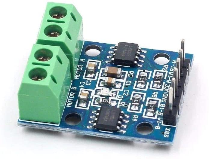 On board two the L9110S motor de controle chip, o module can simultaneously drive two DC motors or a 4-wire 2-phase stepper motor, A tensão de entrada module é: 2,5-12 V e o 800 mA continuous current output