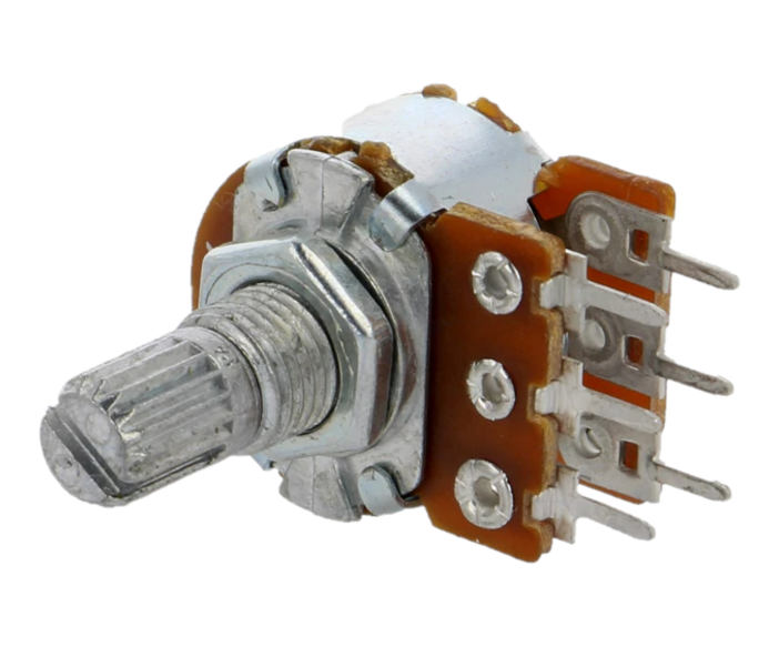 Potenciómetro axial de volta única 10kohm 125mW ±20% THT 6mm Serrilhado duplo linear