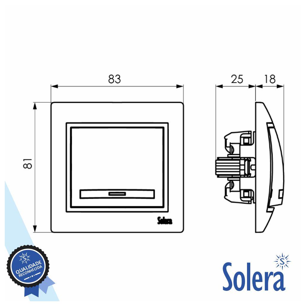 - Pulsador luminoso de encastrar - Adequado p/ iluminação, c/ sinalização - Tensão funcionamento: 250VAC @ 10A - Contactos de prata de alto poder ruptura - Mecanismo completo c/ espelho - Dimensões: 83x81x10 mm. - Peso: 0.09 kg - Dimensões: 83x81x43 mm