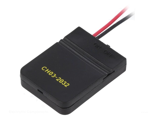 Suporte de bateria CR2032 3VBR2032,CR2032,DL2032 preta 150mm cabo com interruptor