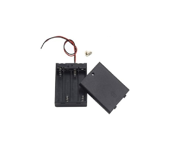 Suporte para 4 Pilhas AA com tampa e interruptor, com fios