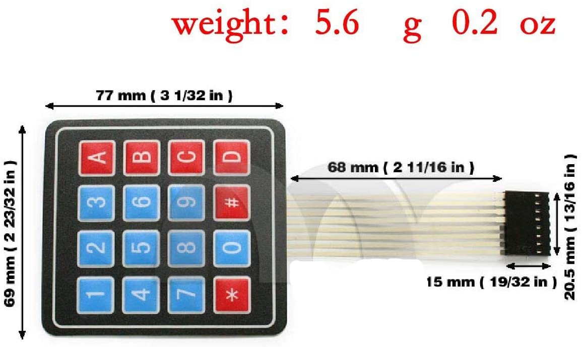 Teclado 16 teclas 4 x 4 Matrix membrana AVR 12 V para Arduino e Raspberry Pi