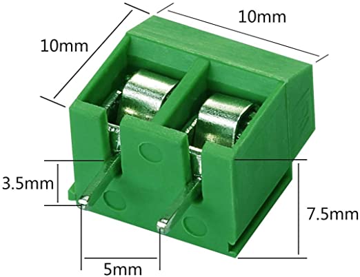 Número do pino: 2 pinos Passo: 5 mm ensão nominal: 300 V, corrente nominal: 10 A, Para tamanho do cabo: 14-22 AWG