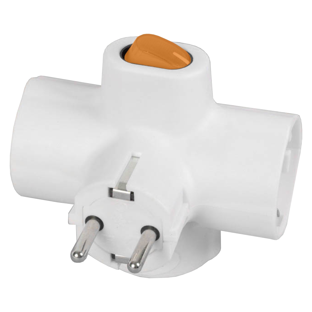 Ficha Elétrica Adaptadora 3X Schuko C/ Interruptor